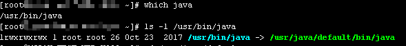 若不是通过以上方式,或者为 Linux 平台,可以先通过 which java 或者 whereis java 找出命令路径。然后通过使用 ls -l 查看命名的实际路径。