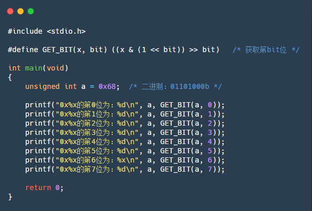 #define GET_BIT(x, bit) ((x & (1 << bit)) >> bit) /* 获取第bit位 */