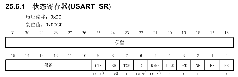 /* 数据寄存器非空,RXNE标志置位 */ if (USART1->SR & USART_SR_RXNE) { /* 其它代码 */ USART1->SR &= ~USART_SR_RXNE; /* 清零RXNE标志 */ }
