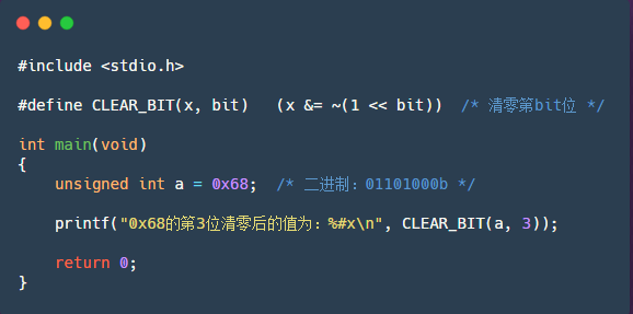 #define CLEAR_BIT(x, bit) (x &= ~(1 << bit)) /* 清零第bit位 */