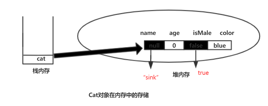 //访问实例变量 cat.name = "sink"; cat.isMale = true;