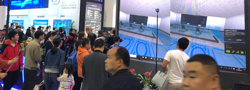 项目中的 3D 场景例子其实是 Hightopo 最近贵州数博会,HT 上工业互联网展台的 VR 示例,大众对 VR/AR 的期待很高,但路还是得一步步走,即使融资了 23 亿美金的 Magic Leap 的第一款产品也只能是 Full of Shit,这话题以后再展开,这里就上段当时现场的视频照片: