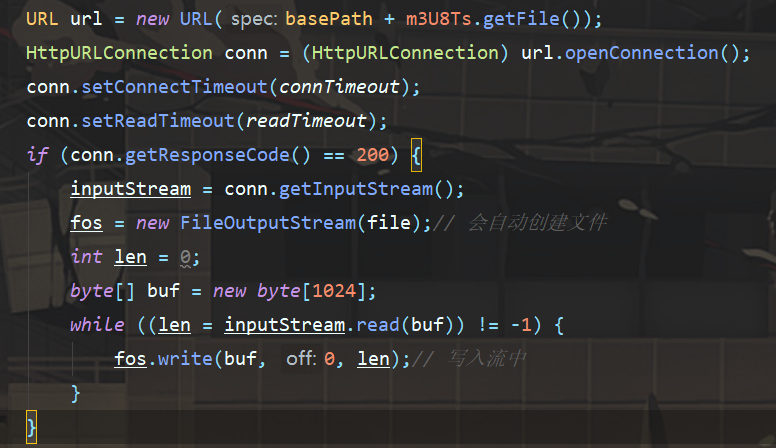 这里提一点,m3u8里面的ts的路径一般对路径,会和m3u8在同一文件夹,我们代码中也是这么认为了,但是难免有些网站会单独存放m3u8和ts文件,如果遇到这种情况,修改一下代码即可。