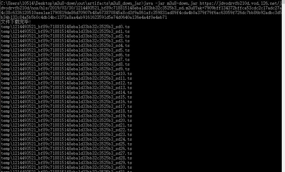 也可以直接m3u8-down.jar [m3u8地址],不会显示保存信息,会在后台执行。