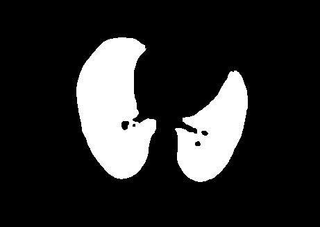 最后保留最大的连通域,此时最大的连通域就是肺部。