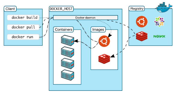 Client(客户端):是Docker的用户端,可以接受用户命令和配置标识,并与Docker daemon通信。