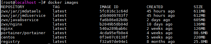 查看所有镜像:docker images [OPTIONS] [REPOSITORY[:TAG]]