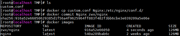 复制文件到容器:docker cp custom.conf Nginx:/etc/nginx/conf.d/