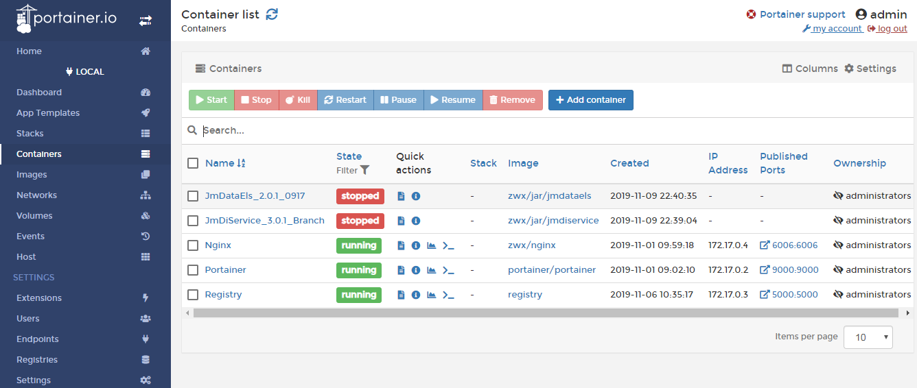 事件日志显示、容器控制台操作、Swarm集群和服务等集中管理和操作、登录用户管理和控制等功能。功能十分全面,基本能满足中小型单位对容器管理的全部需求。