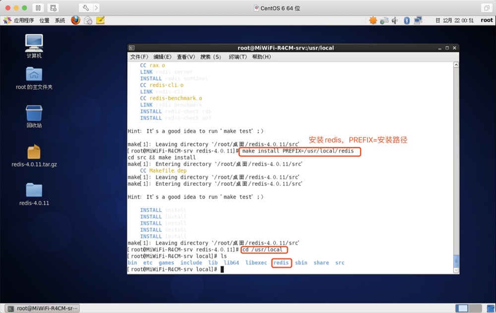 make install PREFIX=/user/local/redis 格式:make install PREFIX=安装目录