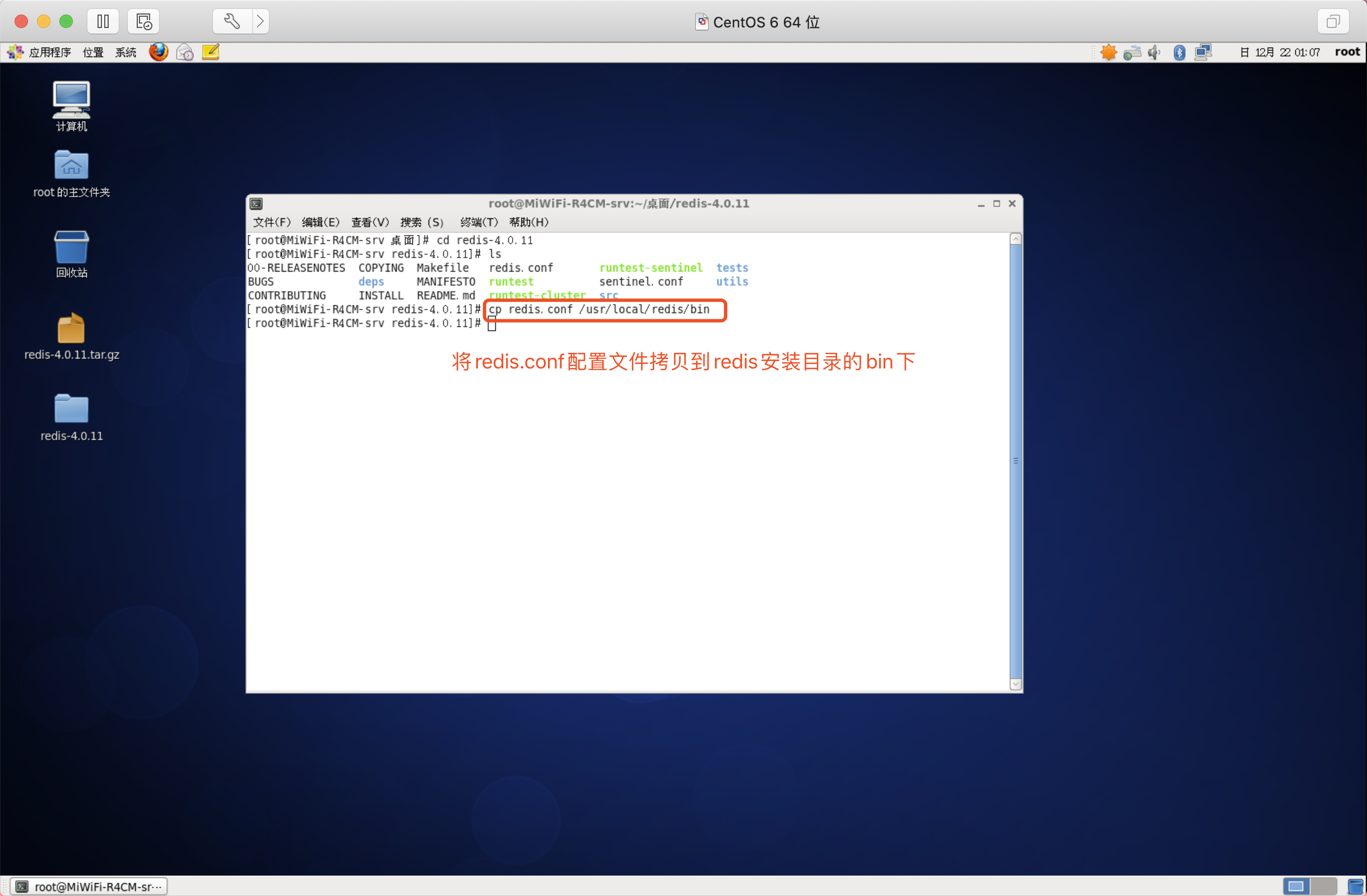 cp redis.conf /usr/local/redis/bin 格式:cp 拷贝文件夹 拷贝路径