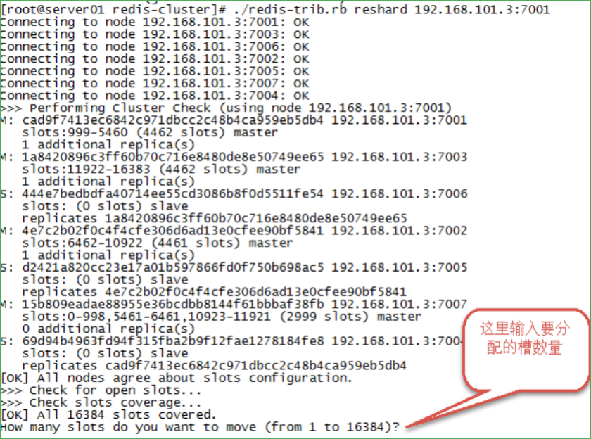 添加完主节点需要对主节点进行hash槽分配,这样该主节才可以存储数据。