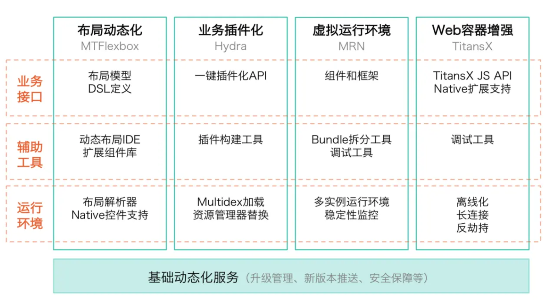 业务插件化:在Android系统中,通过特有的插件化能力,实现动态更新的能力,但是不能支持iOS,因此多用于Android系统中Hot fix。