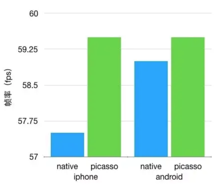 业界对于动态化方案的期待一直是“接近原生性能”,但是Picasso却做到了等同于原生的渲染效率,在复杂业务场景可以达成超越原生技术基本实践的效果。就目前Picasso在美团移动团队实践来看,同一个页面使用Picasso技术实现会获得更好的性能表现。