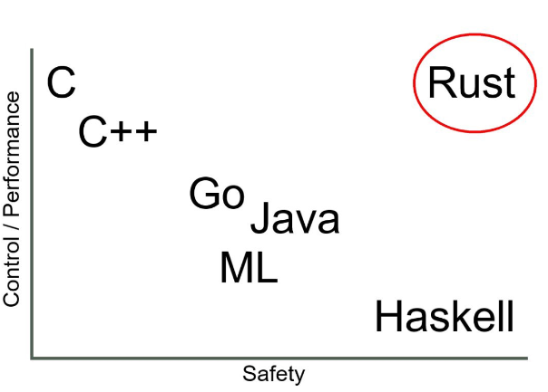 有很多人尝试过将 C/C++的特性和 Haskell,Java 的安全性结合起来,但目前看来,Rust 是第一个实现这一目的的产品级编程语言。