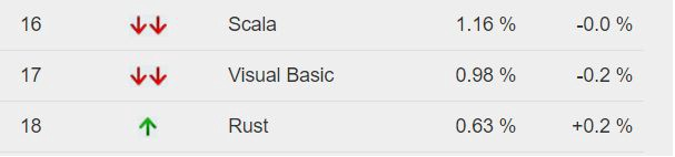 Julia 相对年轻(只有一岁),但在 TIOBE index 中仍排在第 43 位: