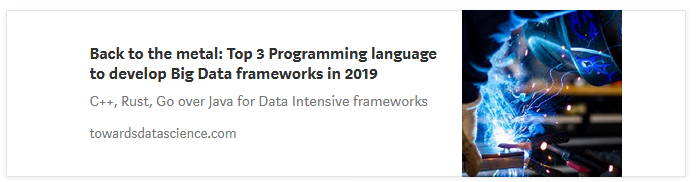 Graydon Hoare 最早将 Rust 作为一个副产品开发出来。他受到了研究性的编程语言 Cyclone 的启发。Rust 是开源的,Mozilla 与许多其他公司和社区一起进行语言开发。Rust 于 2015 年首次发布,很快就引起了社会各界的关注。在以前的文章中,我深入研究了 Rust,并论证了为什么在大数据域中使用 Rust 来代替 C++、Java 是一个更好的选择: