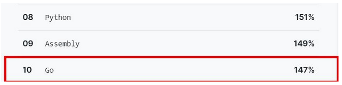 根据 GitHub Octoverse 的统计,Go 也是增长最快的十大语言之一: