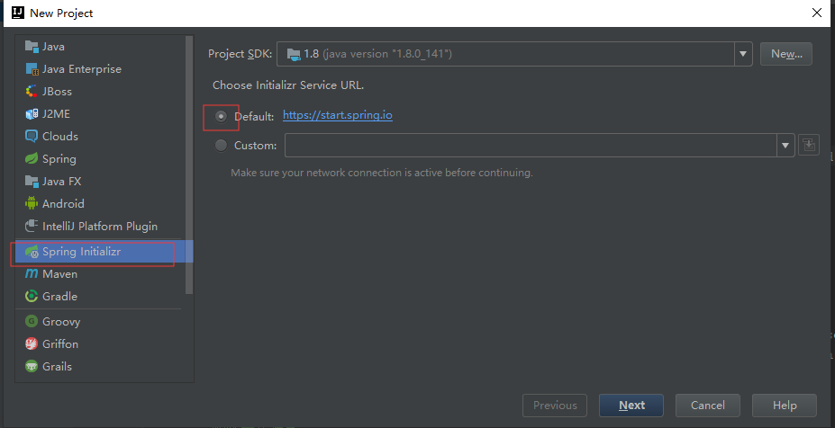 在NewProject界面里,选择Spring Intinalizr,然后勾选Default,点击Next;