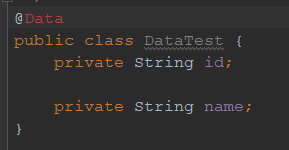 如上图所示,我们定义了一个实体类DataTest ;类里定义两个私有字段,然后我们在类的头上加了一个Data注解,然后。。。然后。。。