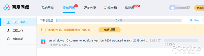 百度网盘对非会员限速,一个Win10镜像下载速度仅有30多K/秒,猴年马月才能下完