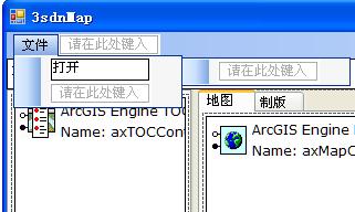 在设计视图中,单击菜单栏,会出现“请在此处键入”的提示,单击提示就可以键入菜单名称,如“文件”,再单击“文件”,即可输入其下拉子菜单,如下所示: