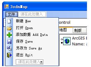 按 F5 编译运行程序。也许你会发现,菜单命令的实现方式都是类型的。没错,在 AE9.2 中,内置了许多常用的 Command 和 Tool ,如 ControlsAddDataCommandClass 、 ControlsMapZoomInToolClass 、 ControlsMapPanToolClass 等等,这些内置对象在 ESRI.ArcGIS.Controls 命名空间中,你可以对象浏览器中查看。而且这些内置对象的调用方式都类似,如下所示: