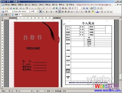 到此,我们用WPS2009制作的简历就完成了,快把它打印出来看看吧!