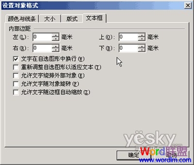 为便于控制,点击WPS“文本框”选项卡,将内部边距的4个数值全部设置为“0”(图2)。点击“确定”退出。