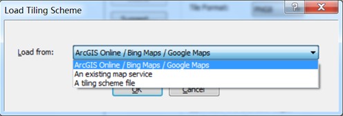 (1)、缓存的结构变化 在ArcGIS 10的缓存结构中,可以选择使用ArcGIS Online/Bing Maps/Google Maps的格式,也可以试用已发布地图服务的格式,或自定义的格式。其中如果想把地图服务与 ArcGIS Online或Google、Bing服务叠加,则可以选择第一种。目前的ArcGIS Online的切图结构已经与Google等一致,不再是一个独立服务的结构。