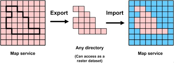 (4)、协作缓存 协作缓存即缓存的导出导入。协作缓存支持两种主要应用场景: a.缓存服务的融合。 所谓缓存服务的融合,即将“服务a”的部分比例尺缓存导出,并导入到对应的“服务b”的相应比例尺中,替换已有的缓存。如下图所示: