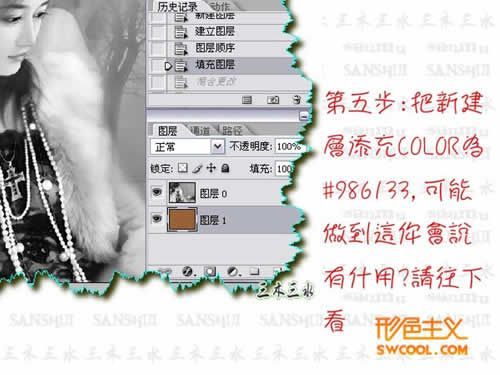 第五步:把新建层填充COLOR为#986133,可能做到这你会说有什么用?请往下看