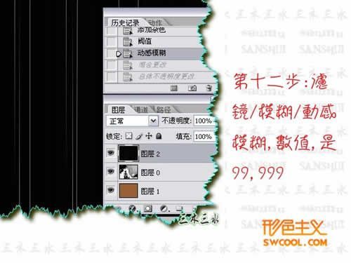 第十二步:滤镜——模糊——动感模糊,数值,是99,999
