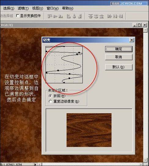 十、在切变对话框中设置控制点,边观察边调整到自己满意的形状,然后点击确定