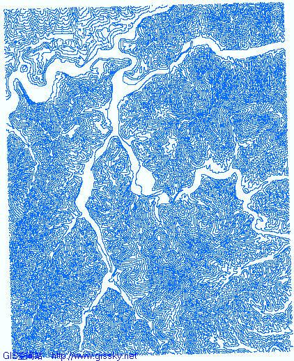 Step 1:首先,打开下载数据中的surface.mxd这个地图文档。地图文档中有两个图层,其中可视的为elevgrid图层,它是Gird格式,用来表示地面高程。我们就要根据它来创建等值线。 Step 2:设置分析环境 在进行空间分析前,必须对设置分析环境。在Spatial Analyst工具条中,Spatial Analyst菜单下,点击Options。设置你的工作目录;设置Extent为"Same as Layer elevgrid";设置Cell Size "Same as Layer elevgird". Step 3: 生成等值线 在Spatial Analyst菜单--->Surface Analysis---->Contour,出现下面这个控制面版,在Input Surface 中选择输入的Raster,Contour interval表示等高线间的差值,Base contour表示启始等高线,一般采用却省0。Z facotor表示方向控制,兔八哥从来没用过。下面就是输出的位置和文件名了。 Step 4:等几秒后,结果出来了,如下图所示。呵呵,是不是很简单呀。