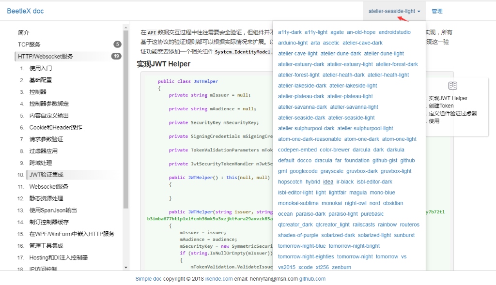 支持数十种代码主题,由浏览者选择自己喜欢的主题