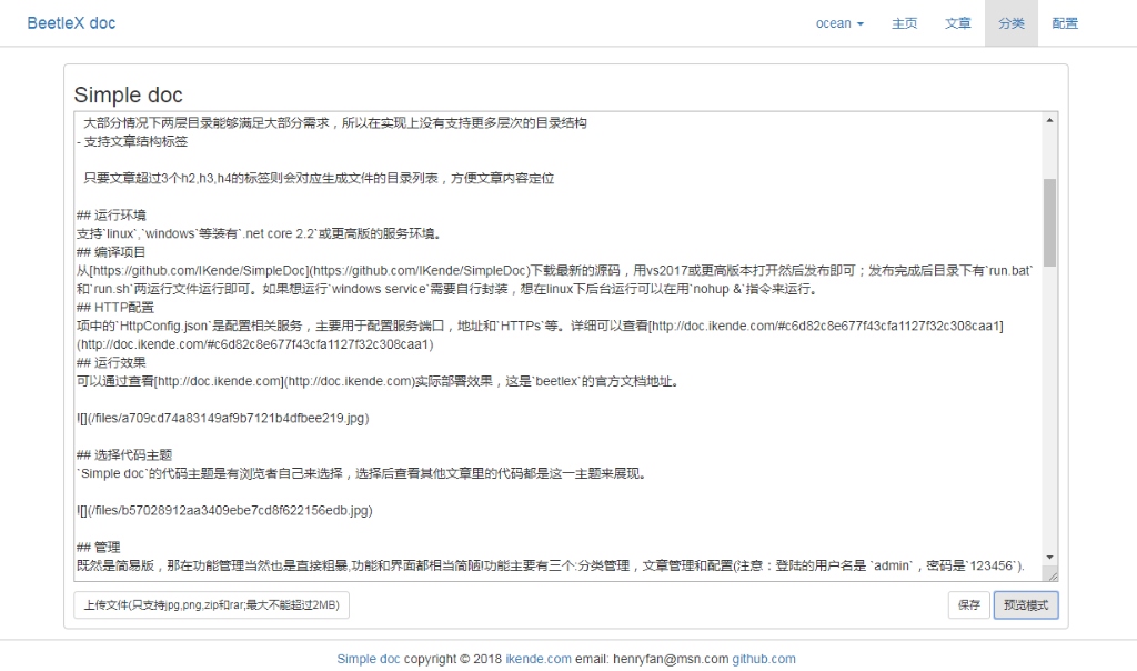 标签索引,最悲剧的是文章编辑的时候不能直接图片粘贴和文件上传;为了满足自己的需求也顺带帮Beetlex