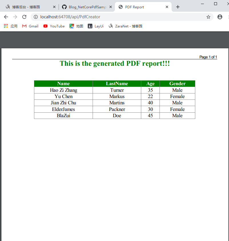 一切看起来都是那么完美,就这样我们就可以轻松的在ASP.NET Core中构建PDF文档并且还可以完美适配相关逻辑和某些文档设置!!