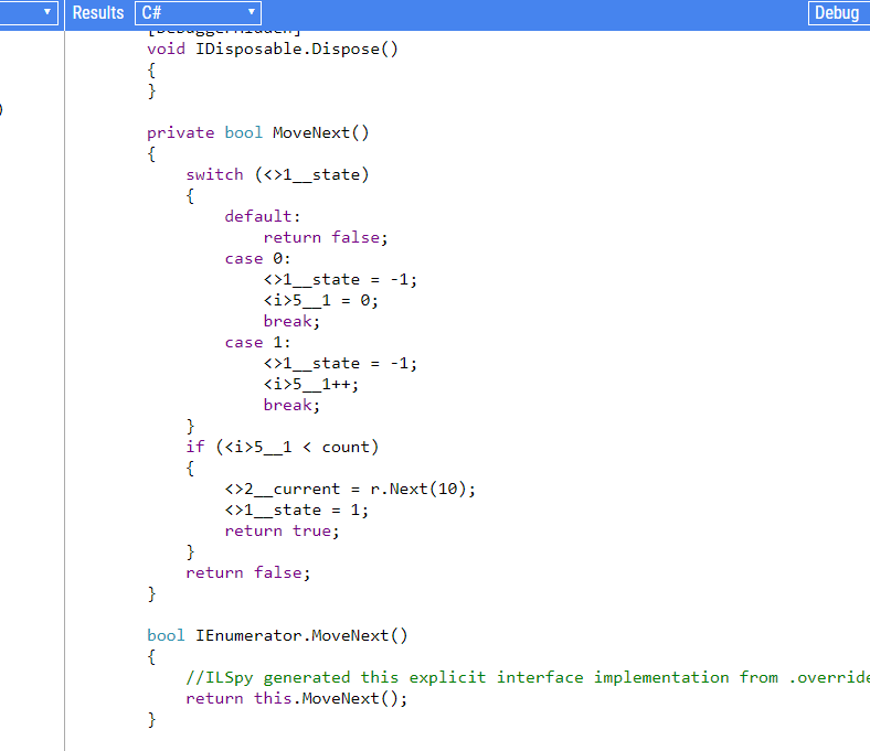 {//ILSpy generated this explicit interface implementation from .override directive in MoveNextreturn this.MoveNext();