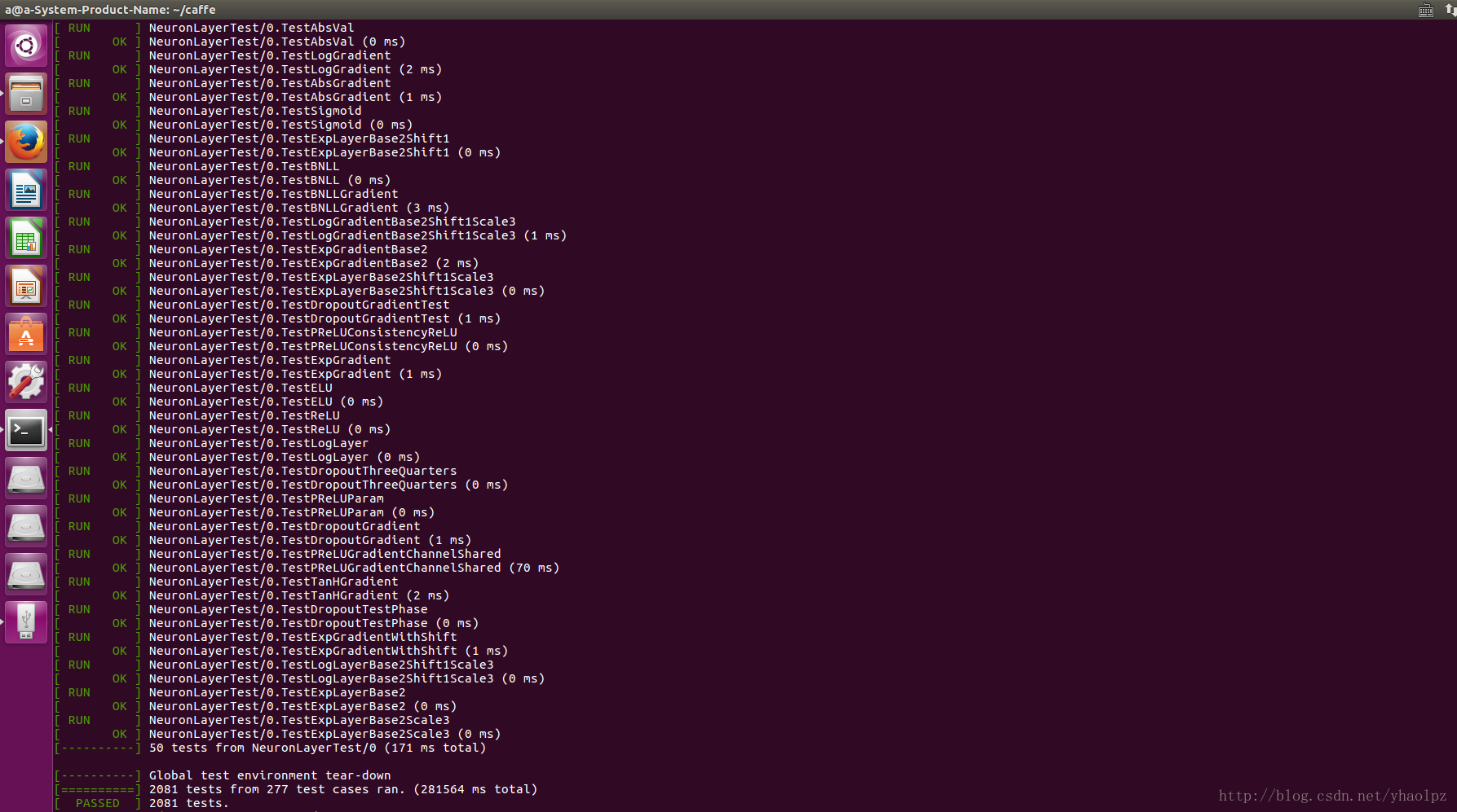 cd caffe sudo make clean sudo make all #或者make all -j4(代表4核,或者j8) sudo make test sudo make runtest #或者sudo make runtest -j8 sudo make pycaffe
