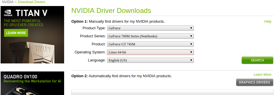 Ubuntu 下安装CUDA需要装NVIDIA驱动,首先进入NVIDIA官网,然后查询对应NVIDIA驱动是否支持你电脑的型号。