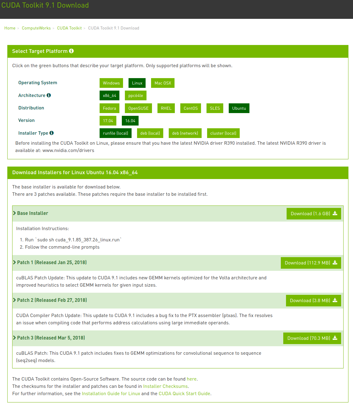 不建议安装CUDA 9.1 ,建议安装CUDA 9.0版本。CUDA 9.1里面自带387驱动,但是一般CUDA 9.1自带的驱动一般很难安装成功的,所以建议自己去单独安装384显示驱动。并且官网提示CUDA9.1 需要的显卡驱动必须至少是390以上版本,所以安装了384显卡驱动则需要安装CUDA9.0。