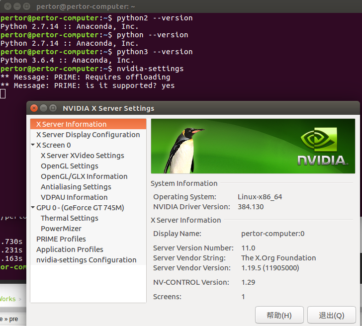 GeForce GT 745M为我电脑的型号,所以version:390.48是支持我的NVIDIAGPU驱动的。
