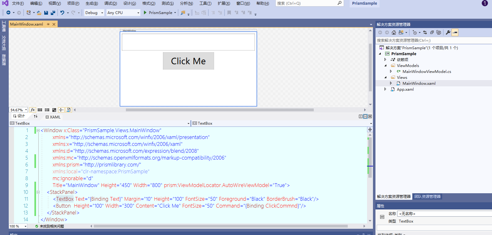 可以看到,我们已经成功的用prism实现数据绑定了,且View和ViewModel完美的前后端分离