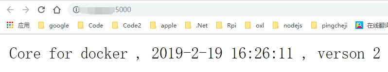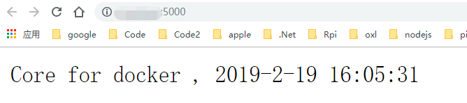 访问一下服务器的5000端口,发现能够正确返回数据表示我们的Asp.net Core程序在容器中运行成功了