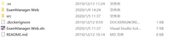 Web页面和相关Dockerfile文件都在ExamManager.Web当中,其余项目文件全在src目录下,一定要注意: