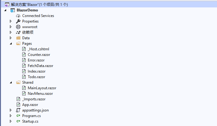 创建项目成功,我们来分析一下Blazor中的项目初始文件都是些什么?都有啥用?