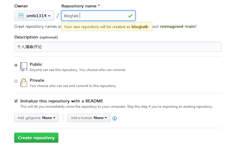 1.首先需要到GitHub上去新建一个仓库用于存放评论的内容: