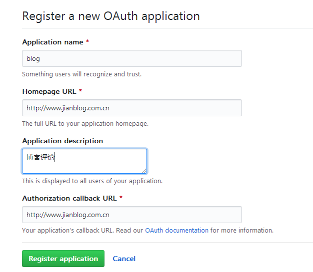 注意两个URL就是你网站的域名。应用名称随便写,描述随便写。