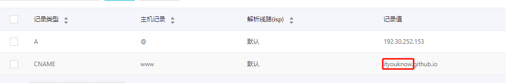 首先需要设置域名解析,将域名的地址指向自己的 github 博客地址。这里以万网的域名配置为例,选择需要设置的域名点击解析,在域名解析页面添加以下两条记录